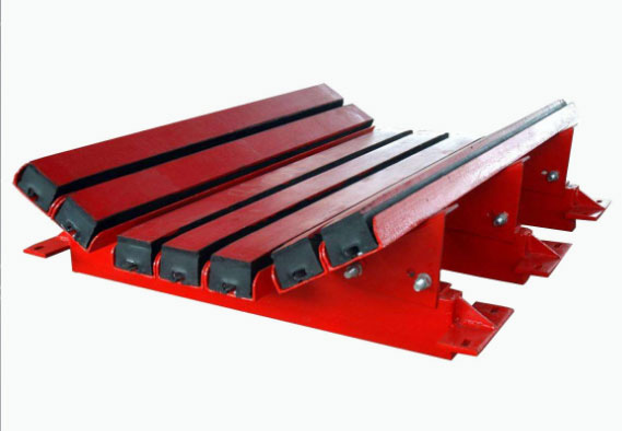 緩沖床主要用于替代緩沖托輥,緩沖床由緩沖條組成,而緩沖條主要應(yīng)用優(yōu)良的高彈性特種橡膠層充分有效吸收了物料下落時(shí)的沖擊力,大大降低了物料下落時(shí)對輸送帶的沖擊,******的改善了落料點(diǎn)的受力狀況。