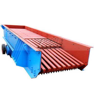 電機通過驅動三角帶帶動偏心激振器,使兩偏心軸保證同步反向旋轉,所產(chǎn)生的離心力做往復直線振動,使物料在振動過程中連續(xù)向前運動達到給料的目的。